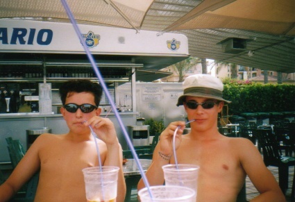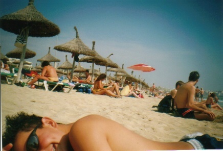 So, jetzt sind wir alle drei wieder heil vom Urlaub zurück. I sag`s euch: ES WAR NUR NOCH GEIL!!! Jetzt hab ich endlich Zeit gefunden, sie für euch ins Internet zu stellen. Also, viel Spaß mit ihnen... Das war die Aussicht von unserem Zimmer aus, auf unseren Pool. Das Foto entstand in unserer Stammkneipe, der Krombacher-Ecke. Da war ich auf dem Balkon von Marina, die wir kennenlernten. Eva, ihre Freundin zeige ich euch gleich. So, das ist Crazy-Eva. Da sie sich schon ihre Rastas machen lassen. Aber die hat sie dann zwei Tage später aufgemacht. Die 2 kamen übrigends aus der Nähe von Straubing. Echte crasse Leudls... Da haben wir 5 uns ein Tretboot ausgeliehen und sind dann im Meer schwimmen gegangen. War voll lustig, besonders Flo`s Panik-Atacken. (*gg*) So, dann am ersten Tag waren wir schon am Ballermann 6. Aber wie man sieht, war am Mittag noch nicht so viel los, aber sonst ist da echt crasse Gaudi. Da Ferdi hat uns in unserem Hotel mal wieder Nachschub zum Trinken besorgt. Gott sei Dank haben wir All-inclusiv ghabt. Da liegen da Flo und Ich mal wieder Faul am Strand beim Ballermann 7! Das ist auch wieder in unserem Hotel, wo wir uns besonders an den ersten Tagen ein bisschen lustig getrunken haben... Das ist wieder am Strand beim Ballermann 6. Das Foto entstand bei einer spontanen Foto-Action im Zimmer von uns. Die anderen Fotos sind a bissl weiter unten. Das T-Shirt bekamen wir von der besten Disco auf Mallorca. Da ist vielleicht eine Stimmung. ...wieder in unserem Zimmer und... ...ein Selbstportrait auf unserem Balkon, weil der Film voll werden musste. Das war a Gaudi. I mit da Marina ihren langen Haaren. Da Ferdi und ich auf der Mauer, wo es zum Strand ging. Das war mal wieder am Strand. Und das der Blick aufs Meer. Das war vor dem "Oberbayern" Marin und Ferdi wieder mal in der Krombacher-Ecke Chill-Out nach einer anstrengenden Party-Tour am vorherigen Abend am Strand Wir drei machten jeden Tag Chill-Out auf dem Balkon. Ich glaub, an diesem Abend entstand auch die neue Zeitrechnung "Flotus..." (=INSIDER) Soll das etwa in der Krombacher-Ecke Cola sein..? Ferdi mit Marina`s Sombrero! Marina bei ihrer Lieblingsbeschäftigung.